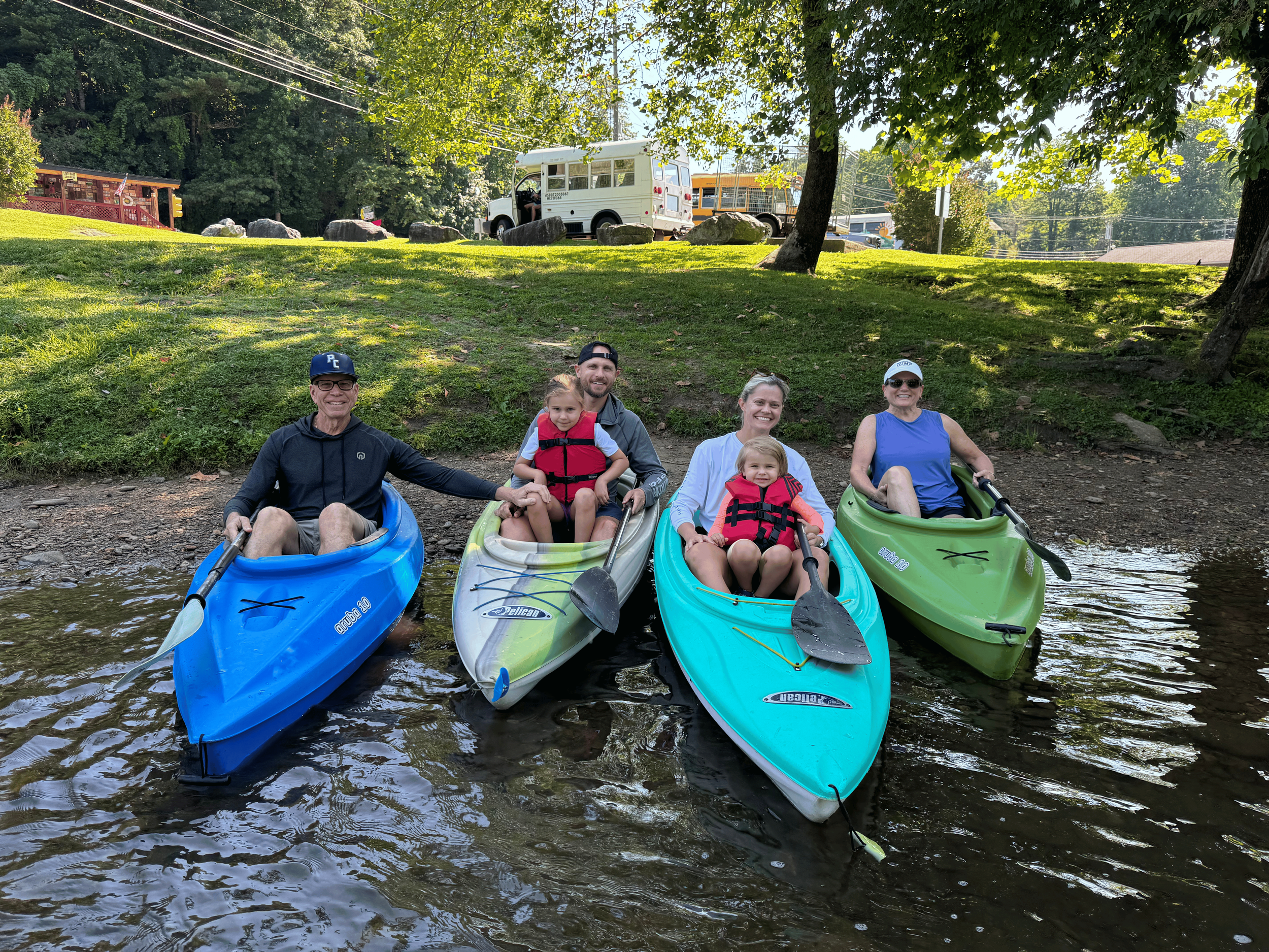 Includes: Transportation, paddles, life jackets